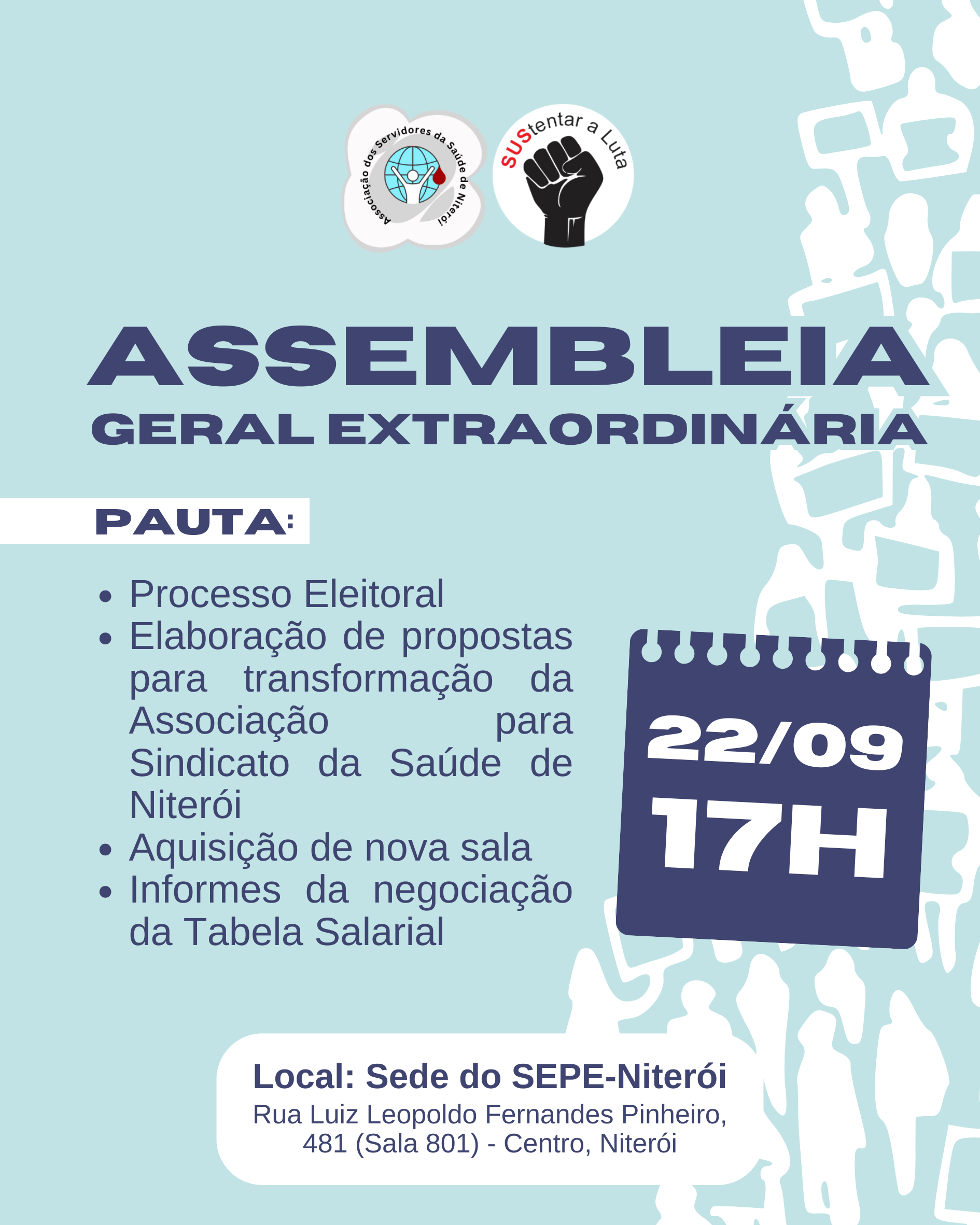 Assembleia Geral da Associação dos Servidores da Saúde de Niterói Leia Mais 15 de setembro de 2025 16:02
