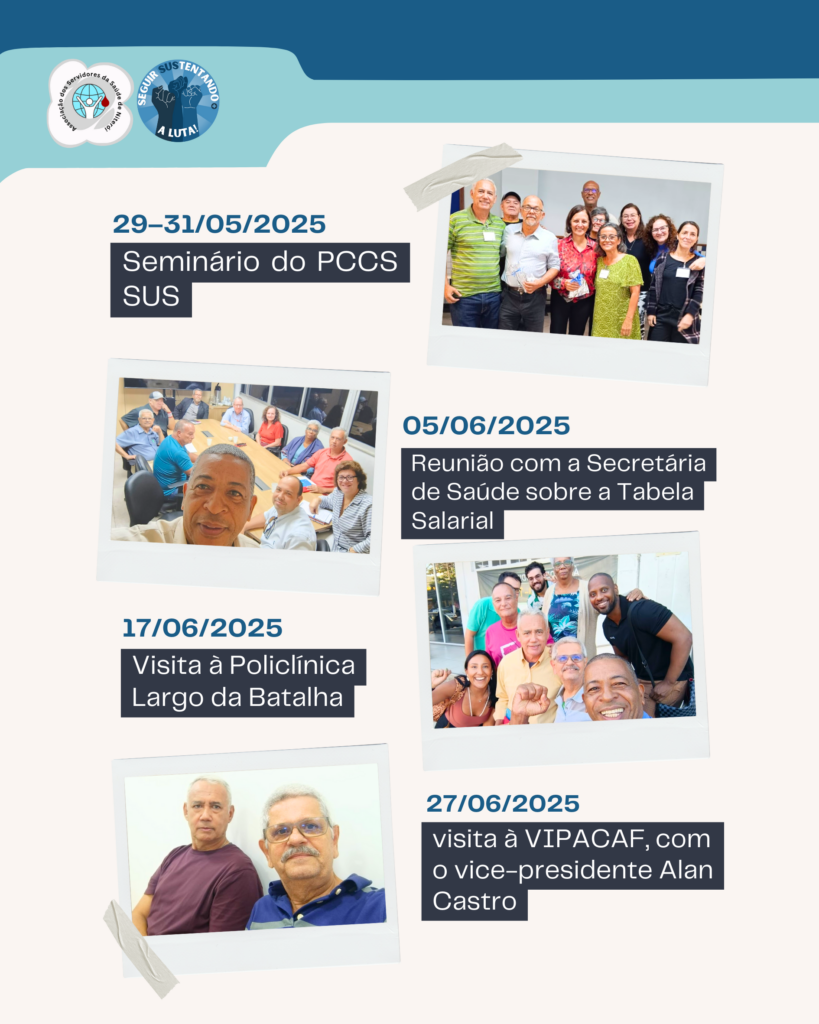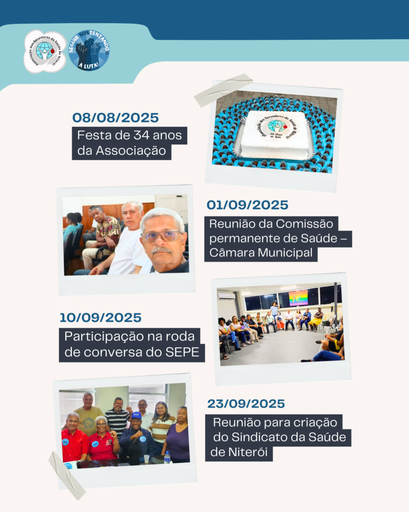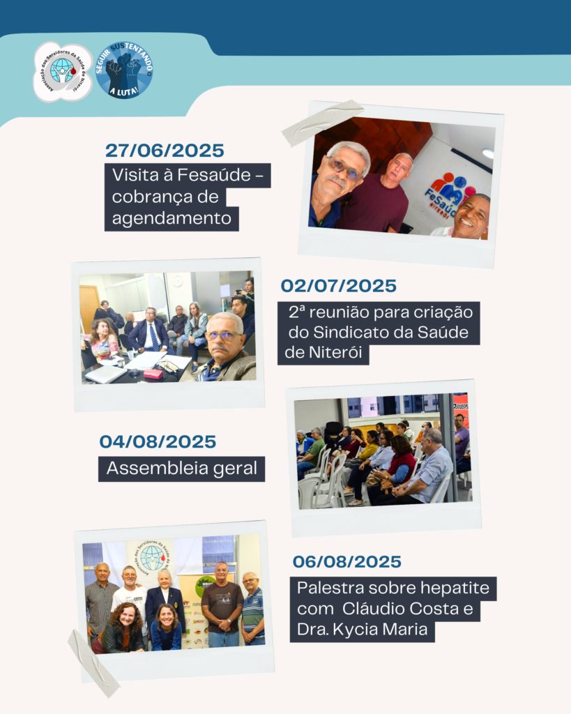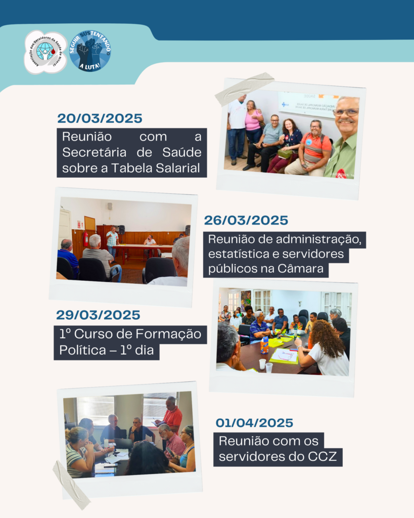 A Associação dos Servidores da Saúde de Niterói esteve presente nas unidades de Saúde, mesas de negociação, Conferências e na Câmara Municipal, defendendo nossos direitos e exigindo a valorização profissional e dignidade da categoria. Seguimos em frente, porque a luta não termina.